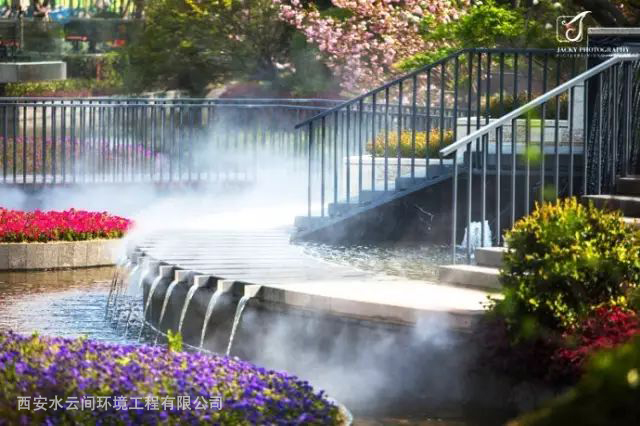 人造霧在通過高壓發(fā)生霧化,形成的精細霧粒能有效的降低周圍的溫度,常用來給景區(qū)降溫,因此也被人們稱為冷霧。水是所有景觀設(shè)計元素中最具吸引力的一種,在水景中加入冷無系統(tǒng),更能夠襯托景觀的靈動性,觀賞性。從自然界的烘托,自然韻味的營造,到建筑景觀的特殊創(chuàng)意設(shè)計,霧森處處體現(xiàn)著人類文化與自然景觀的融合。
