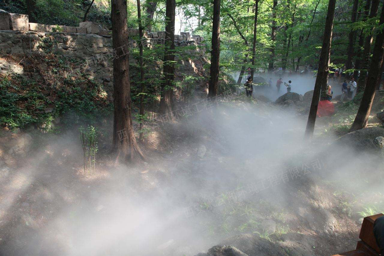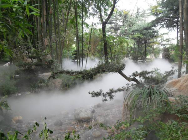 1.造景和保濕:霧既可輕盈婉約,虛無飄渺,又可溟溟漠漠,浩浩漫漫,即可單獨(dú)成景,自成一方天地,又可結(jié)合水系、假山、綠植、燈光等各種元素而形態(tài)各異,相得益彰。其變化多端的形態(tài)和功能,將為中國(guó)園林的景觀意境更添水墨元素。其特有的保濕功能,能更好的兼具植物的養(yǎng)護(hù)和生長(zhǎng);