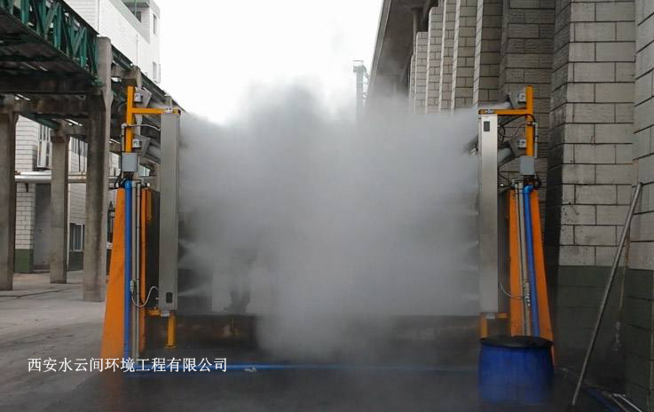 干霧抑塵裝置采用模塊化產(chǎn)品組成。由控制系統(tǒng)、感應(yīng)裝置、空氣壓縮機(jī)、高效噴霧箱、水氣連接管線等組成。
