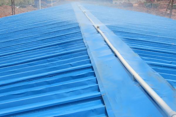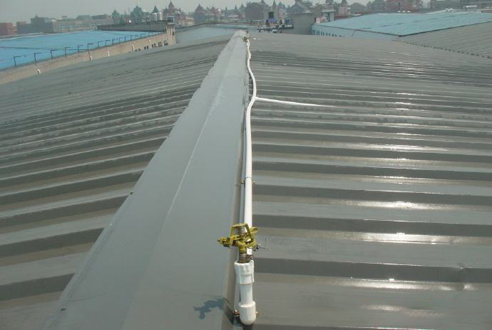 夏季高溫,屋頂直接經(jīng)受太陽直射,廠房車間內(nèi)悶熱難耐,為了改善工作環(huán)境,采用水噴淋的方法給鐵皮房,鋼構(gòu)廠房降溫,施工簡單,費用低。