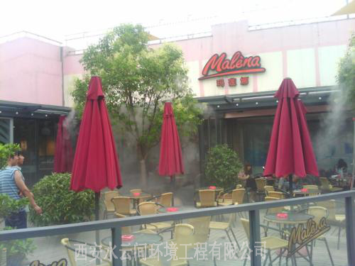 戶外空間環(huán)境降溫,可以局部地控制大環(huán)境的溫度。人造霧降溫系統(tǒng)散發(fā)到空氣中的水微粒,在汽化的過程中要吸收大量周圍環(huán)境中的熱量,蒸發(fā)冷卻從而降低周圍環(huán)境溫度的原理,是戶外防暑降溫的有效手段。