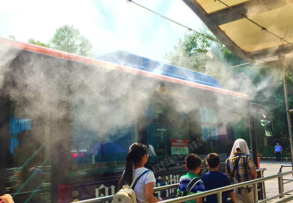 杭州靈隱公交站,“噴霧降溫系統(tǒng)”,在炎炎夏日為候車乘客送上一絲清涼,乘客贊不絕口。
