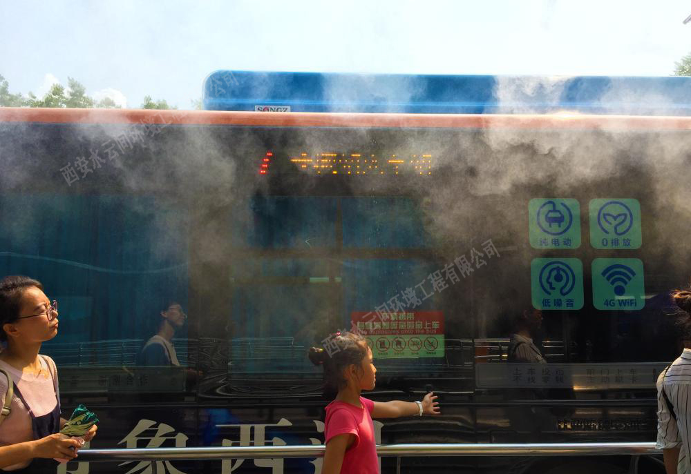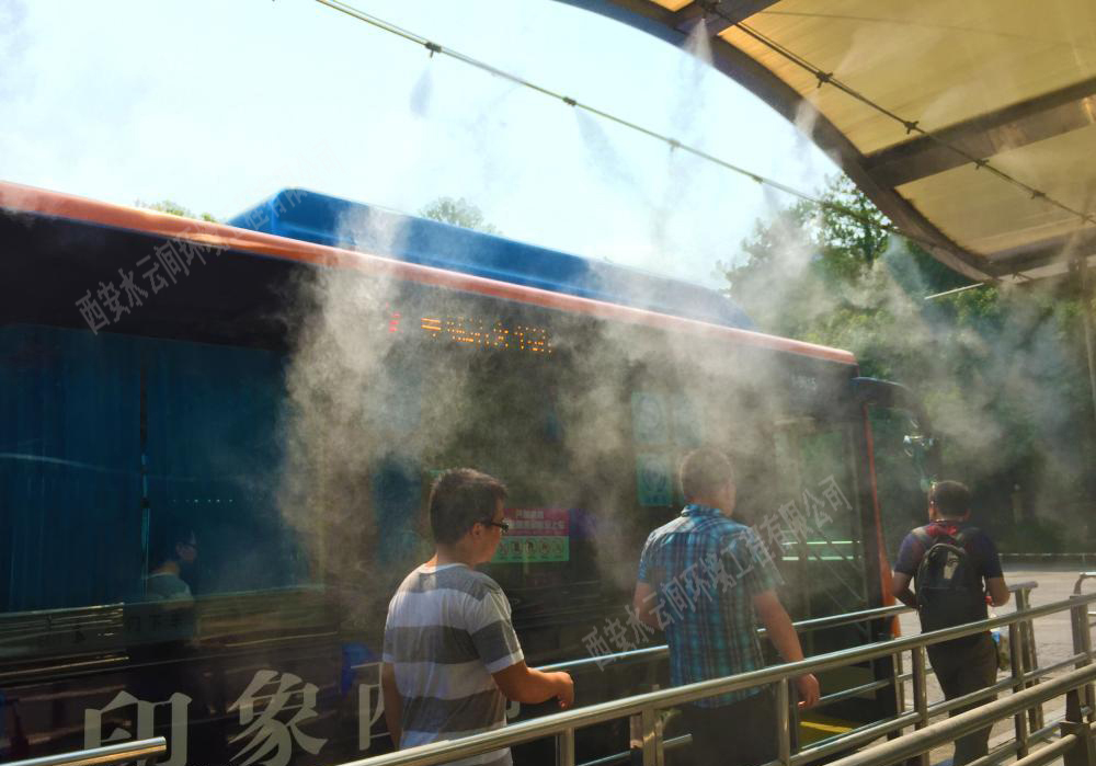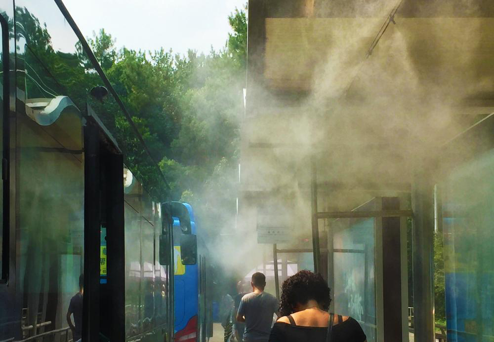 戶外空間環(huán)境降溫,可以局部地控制大環(huán)境的溫度。人造霧降溫系統(tǒng)散發(fā)到空氣中的水微粒,在汽化的過程中要吸收大量周圍環(huán)境中的熱量,蒸發(fā)冷卻從而降低周圍環(huán)境溫度的原理,是戶外防暑降溫的有效手段。